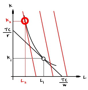 Last time around, we kept the input prices $w$ and $r$ frozen the whole way through. Just held them still and reasoned from there.
