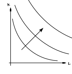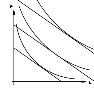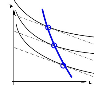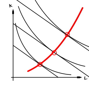 The expansion path above heads off in the direction where both $L$ and $K$ are increasing.