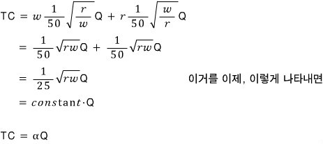 $$TC = wL + rK$$Yeah, that’s nothing — that’s just the total cost equation. What we actually want is the (minimum) TC as a function of $Q$. heh.