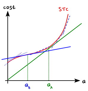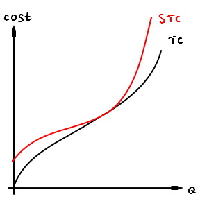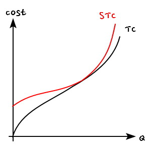 And we figured out: at one specific Q point $Q_{1}$, TC = STC. Everywhere else,