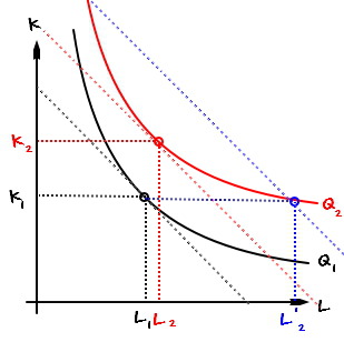 the iso-cost line passing through $(L'_{2},\quad K_{1})$