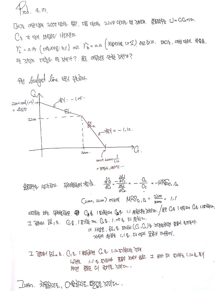 Finance Microeconomics I Studied #46Chapter 4 Practice ProblemsWork through the Chapter 4 practice problems to test your understanding and sharpen your skills.Jan 4, 2017 · 1 min read·gdparkOriginally written in Korean on my Naver blog (2017-01). Translated to English for gdpark.blog.Microeconomics I Studied← Previous #45 · Chapter 2 & 3 Practice ProblemsNext → #47 · Chapter 5 Practice ProblemsShow all 49 posts in this series#1 Introduction to Microeconomics#2 Endogenous and Exogenous Variables#3 Demand Curve and Supply Curve#4 Equilibrium#5 Types of Elasticity#6 Long-Run and Short-Run Elasticity#7 Estimating Demand and Supply Curves#8 Preferences#9 Indifference Curves and Utility Functions#10 Marginal Rate of Substitution#11 Special Utility Functions#12 Utility Maximization#13 Utility Maximization with Special Utility Functions#14 Utility Maximization with Coupons and Subsidies#15 Utility Maximization Under a Membership Scheme#16 Utility Maximization with Savings and Loans#17 Price Consumption Curve and Demand Curve#18 Engel Curve and Income Consumption Curve#19 Substitution Effect, Income Effect, Inferior Goods, and Giffen Goods#20 Backward-Bending Labor Supply Curve#21 Compensating Variation and Equivalent Variation#22 Market Demand and Network Externalities#23 Average and Marginal Product of Labor#24 Isoquants#25 Isoquants: The Uneconomic Region of Production#26 Marginal Rate of Technical Substitution#27 Types of Isoquants: Linear, L-Shaped, and Cobb-Douglas#28 Returns to Scale#29 Technological Progress#30 Opportunity Cost vs. Sunk Cost#31 Cost and Cost Minimization#32 Expansion Path#33 Labor Demand Curve#34 Short-Run Analysis#35 Cost Minimization with Three Variables#36 Total Cost, Marginal Cost, and Average Cost#37 Untitled#38 Economies of Scale and Diseconomies of Scale#39 Short-Run Total, Average, and Marginal Cost Curves (STC, SAC, SMC)#40 Graphing AC, MC, SAC, and SMC Together#41 Average Variable Cost and Average Fixed Cost (AVC, AFC)#42 Perfectly Competitive Markets#43 Short-Run Supply Curve#44 Short-Run Supply Curve (Part 2)#45 Chapter 2 & 3 Practice Problems#46 Chapter 4 Practice Problems#47 Chapter 5 Practice Problems#48 Chapter 6 Practice Problems#49 Chapter 7 Practice ProblemsCommentsDiscussion happens via GitHub Discussions. You'll need a GitHub account to comment.Enable JavaScript to view comments (powered by giscus).