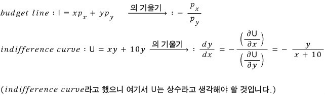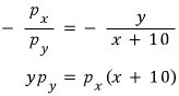 $$MU_{y} = x + 10$$The price of x is $p_x$, the price of y is $p_y$,