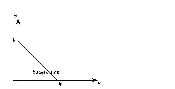 then $100 = 20x + 20y$ is the budget line, so the picture looks like this, right?
