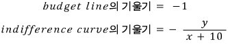 At the tangency point, the slope of the budget line equals the slope of the indifference curve, so —