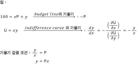 If $p_x$ and $p_y$ are both 20 and income is 100,