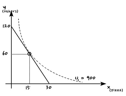 Lou’s preferences over pizza (x) and other goods (y) can be written as $U(x,y) = xy$,