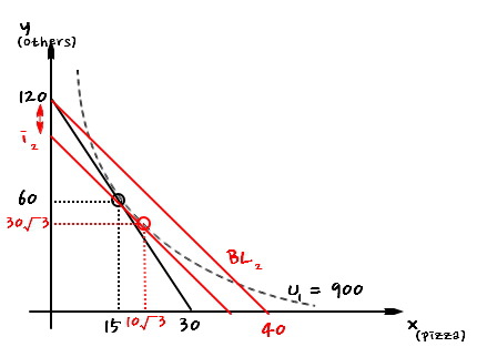 $$\text{Substitution effect} : \Delta x = 10\sqrt{3} - 15$$Now let’s go find $U_2$.