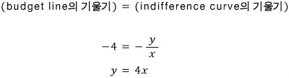 I didn’t bother writing the budget line out above and just said the slope was $-4$ —