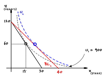 the $U_2$ that’s tangent to $BL_2$ and gives max utility!!!!!!!!!!!!!!!!!!!