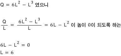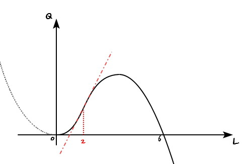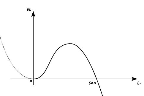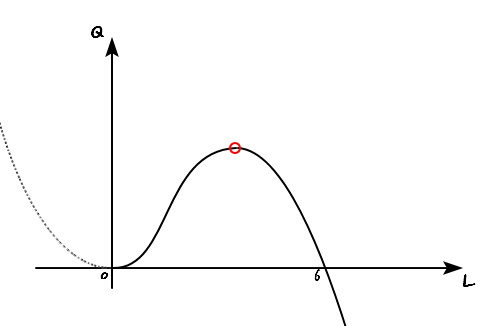$$Q \quad = \quad 6L^{2} \quad - \quad L^{3} \quad = \quad -L^{2}\left( L \quad - \quad 6 \right)$$Bounces off at $L = 0$, crosses through $L = 6$, and shoots off to $-\infty$ as $L \to \infty$! hahaha