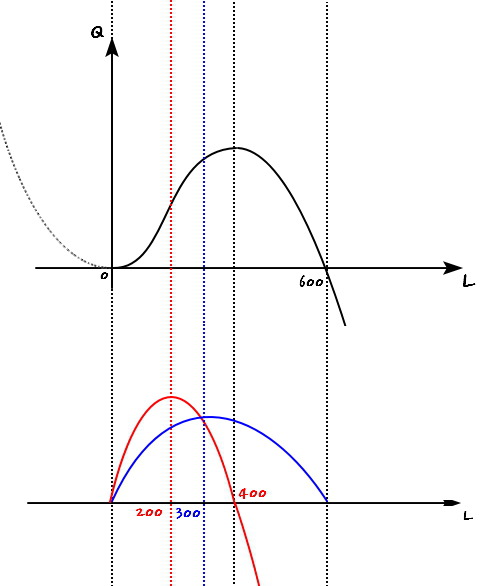 Ahh but — the region $L < 0$ makes zero economic sense, so we don’t need it on this graph. Erasing it.