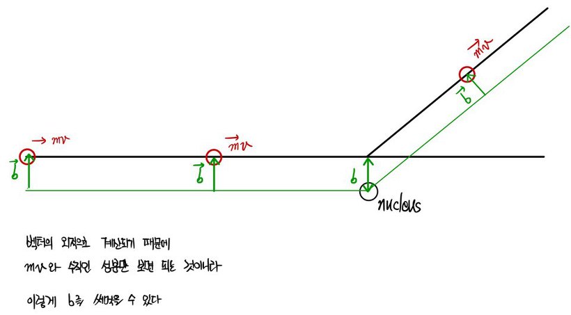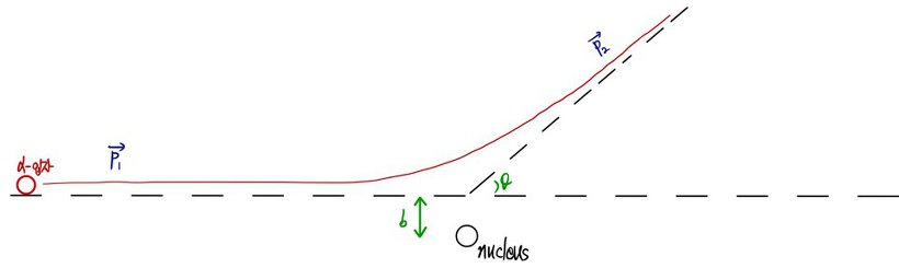 " This is a figure of the α particle being deflected by about b. "