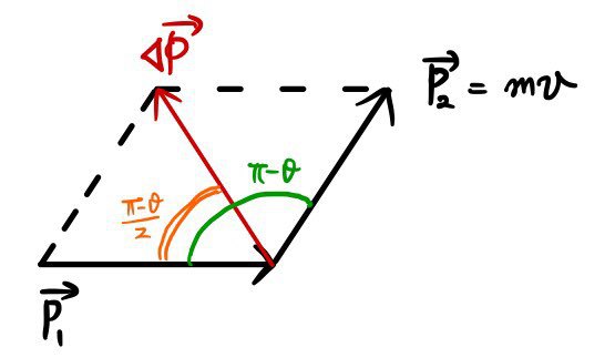 But let us be crafty, instead of summing all those F’s, let’s project the components only in the direction of Δp and sum those up.