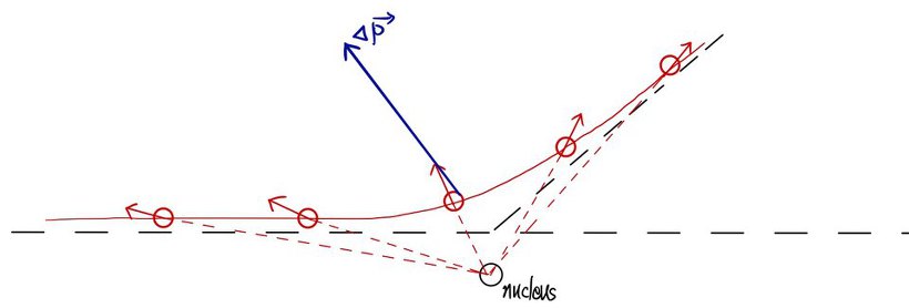 I will draw that electric force at each position. (the blue is the direction of the delta p vector) "