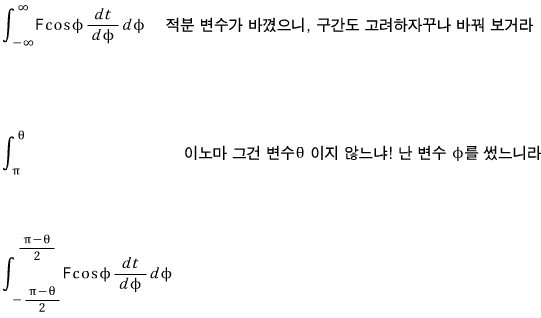 Right, let’s change the integration variable to angle too…. Let’s use the chain rule