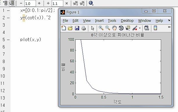 Okay, using the equation from before, let us express the ratio as an equation in theta.
