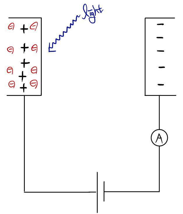 With one material, for red light i doesn’t flow (= electrons don’t fly off),