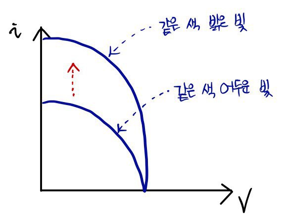 - When V=0, if you make the light brighter, why does i get bigger~~~?