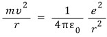And that force will be the electric force between the positive charge and the negative charge separated by distance r acting as the centripetal force, so,