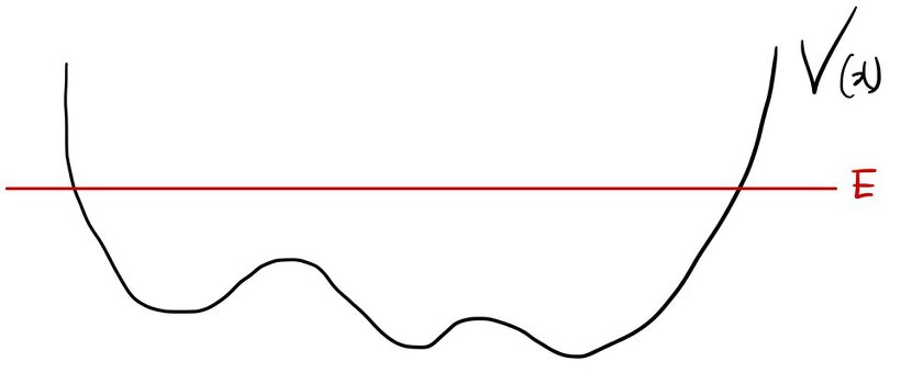 Looks like this. But… the sharpness of the kink in the middle — that should depend on the potential, shouldn’t it?! huh?