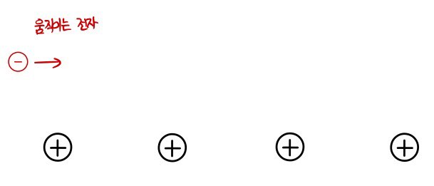 Imagine an electron moving around inside a material.