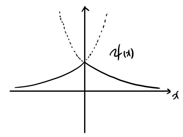 $$\therefore\,\psi(x) = \begin{cases} Ae^{Kx} \quad (x<0) \\ Ae^{-Kx} \quad (x>0) \end{cases}$$Sketch it: