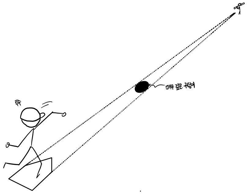 With some absurdly tiny probability, even though there’s nothing in front of the ball, (because of the pit) the ball can bounce back and fly toward the pitcher…