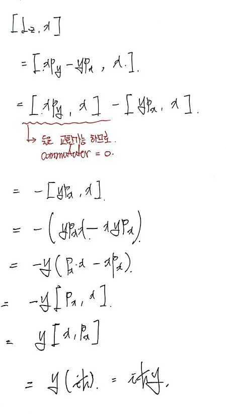 $$= yp_x[p_z, z] + xp_y[z, p_z]$$And applying the relation we proved back when we did Heisenberg’s uncertainty principle,
