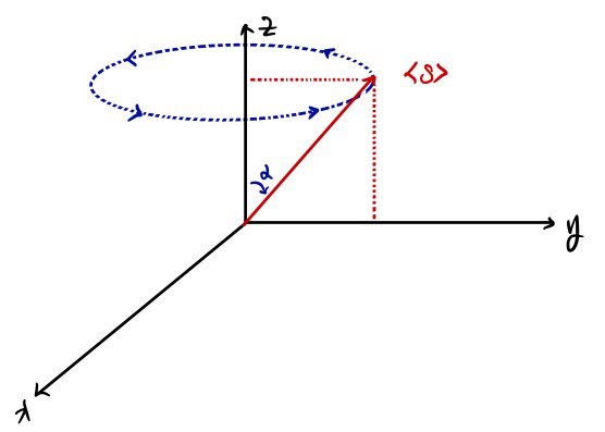 $$\langle S_y \rangle = -\frac{\hbar}{2}\sin\alpha\sin\!\left(\gamma B_0 t\right)$$And $\langle S_z \rangle$: