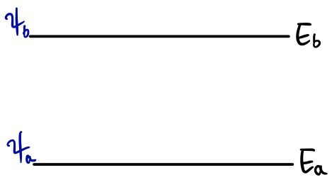 And before we turned the perturbation on, $C_a = 1$, $C_b = 0$ — i.e. the system was just siiitting there in state $a$ the whole time.