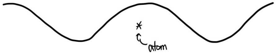 then from the wave’s perspective, the atom is basically a point — might as well not be there in terms of spatial variation.