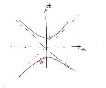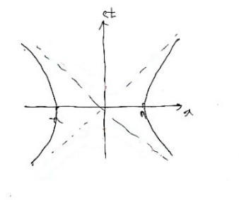 So here in spacetime, I’ll write down the locus of points (events) that are the same distance (interval) from the origin