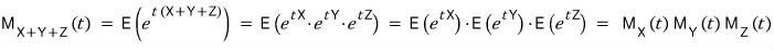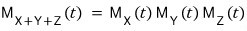 But in this case — the MGF of the random variable $X+Y+Z$ is