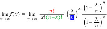 let’s look at what the binomial approximates to as we crank n up to infinity —