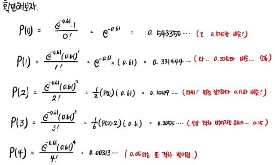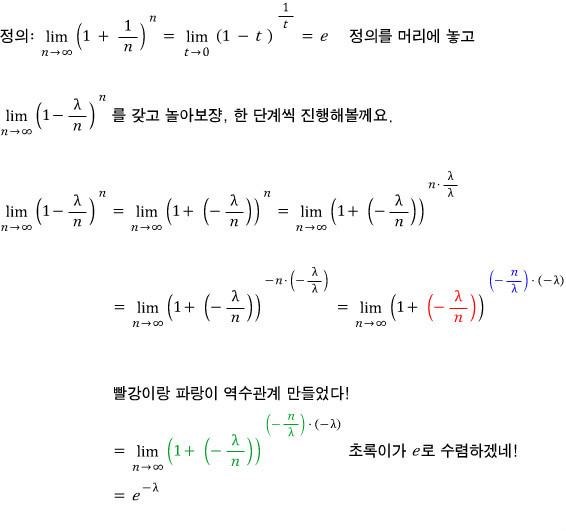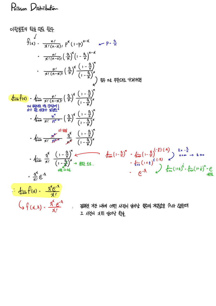 How to count terms (how to count integers in an inequality: don’t get tripped up by $ This is the thing I just keep linking back to whenever I need it, as the foundation for what I’m about to say~~~ Here we go. … gdpresent.blog.me OK — what about the order of $(n-x)(n-x-1)(n-x-2)$ ~~~~???? Gotta count terms here too. It runs all the way to $(n-x)(n-x-1)(n-x-1)$~~~~$(n-x-(n-x-1))$, so let’s count carefully. $(n-x-(0))(n-x-(1))(n-x-(2))$~~~~$(n-x-(n-x-1))$ Same trick, count the terms, from 1 to $n-x-1$ that’s $n-x-1$ terms, and tack on the 0 to get $n-x$ terms total. So — $n$ to the power of $n-x$. Now let’s tidy it all up: If you just stare at the colored bits, they all bow their heads together and flip upside down. Alright ~ one thing handled. Now if we look at the other terms with $n$ going to infinity, It turns into this. The natural constant… that thing….. ….. Don’t need to walk through it, right?????? Nah, you know what, I’ll do it once anyway. It’s easy enough, so — Right, the definition is just this, and so Derivation: complete!!!! “Why’d you bother deriving it?” — you ask????? The point is, we can now see exactly where and how the Poisson distribution comes from — and that’s what the derivation just bought us!!!!! Since the probability distribution function looks like that, if you wanted to write down the cumulative distribution function, Obviously if it were continuous you’d use an integral, right? The problem-solving practice for the Poisson distribution lives over here!!!! ( http://gdpresent.blog.me/220582073367) You only need Prob 3.3! >_< Chapter 3 Practice Problems [ Thermal and Statistical Mechanics I Studied #2 ] Like I said in #1, I’m gonna re-establish the concepts now. *Heat (Q) What is this thing called heat~ To the question… I… don’t really kno… gdpresent.blog.me ↓ One-page summary, written nice and neat on the iPad Originally written in Korean on my Naver blog (2017-11). Translated to English for gdpark.blog.