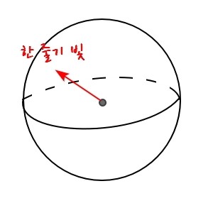 That much spreads out in the shape of a sphere, and among that, a single beam of light