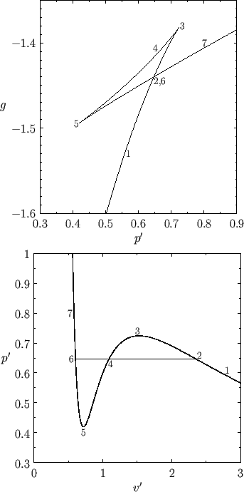 For the case α=0.9, I found G(p) drawn with reduced variables, and a p-V graph!!haha