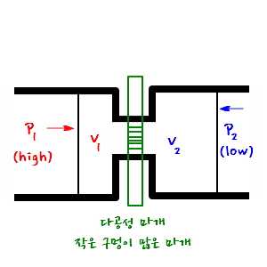 Let’s say gases at high pressure p_1 and volume V_1 flow into a place of low pressure p_2, and the volume becomes V_2, yep.