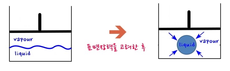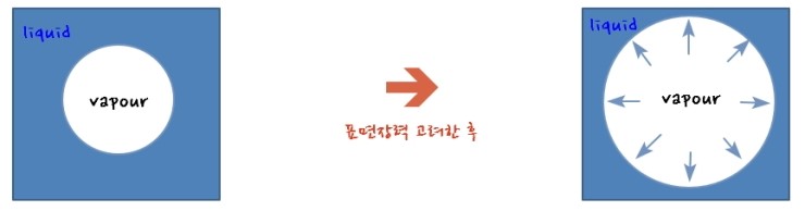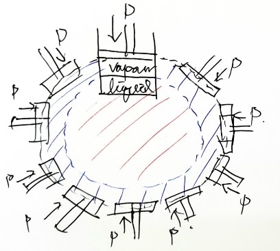 Now then, a water vapour bubble formed inside the liquid!!! If its radius is small, now p becomes smaller than before.