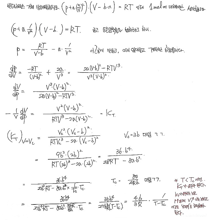 Working through practice problems from Chapters 26 & 27 on van der Waals gases, isothermal compressibility, and isobaric expansivity near the critical point — 27.2 was already covered, so we're skipping ahead~