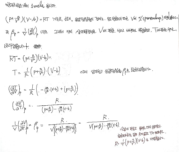 Prob 26.4 Show that the isobaric expansivity of a van der Waals gas